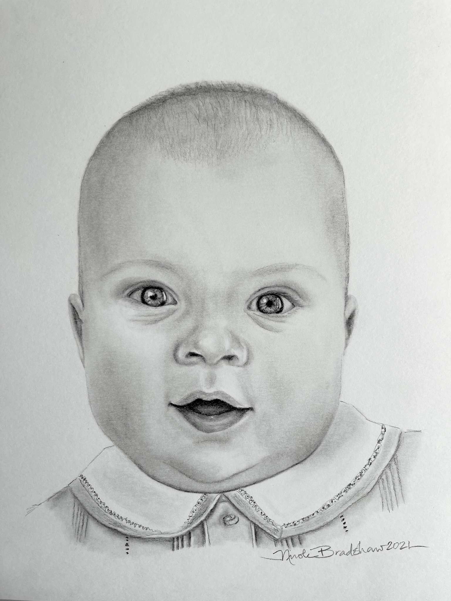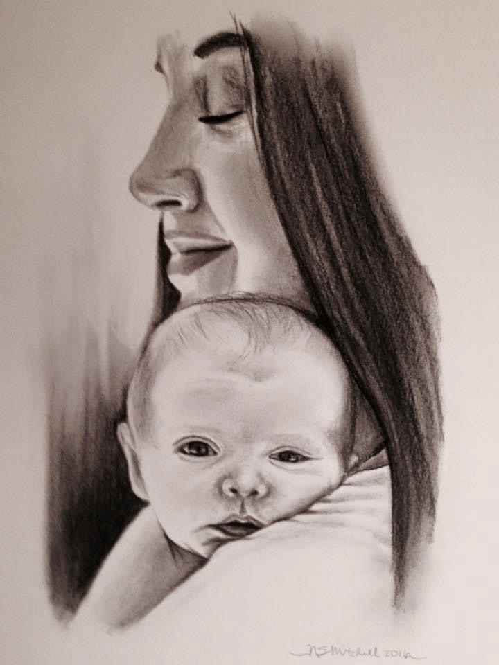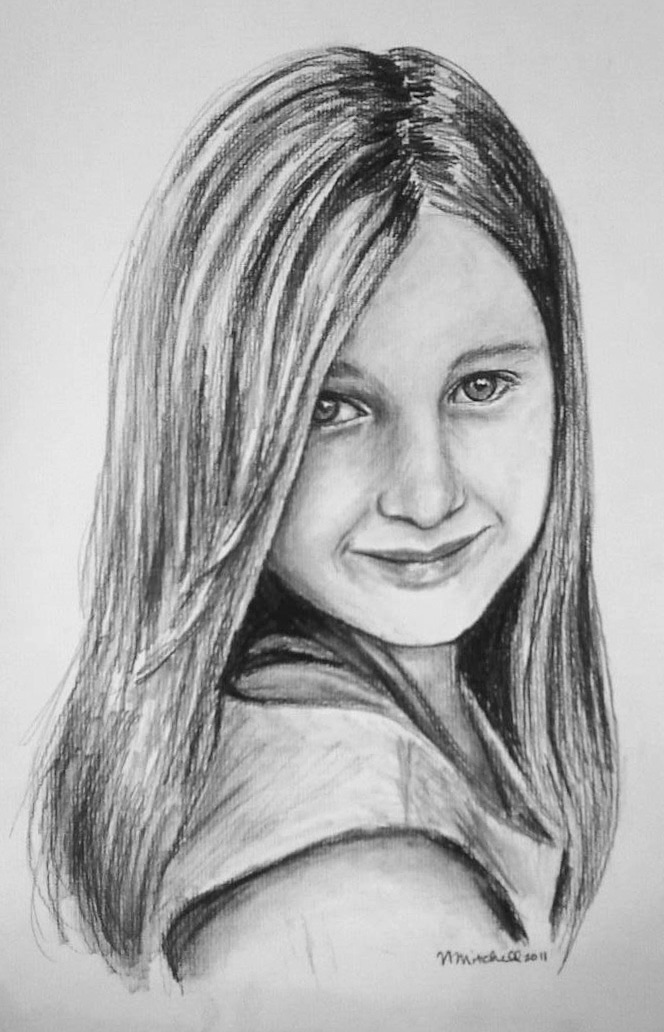 Timeless and dramatic, the charcoal portrait is a classic choice for every home, decor, and budget. The black and white lines (and smudges- with all the tonal greys in between) provide a simple, graphic quality that allows focus on the structure and expression of the face. Plus, charcoal is an ancient medium- a fundamental part of the human experience. Graphite (pencil) is a bit more subtle and allows for precision in detail. Your vision for your portrait will determine which tools will work best!